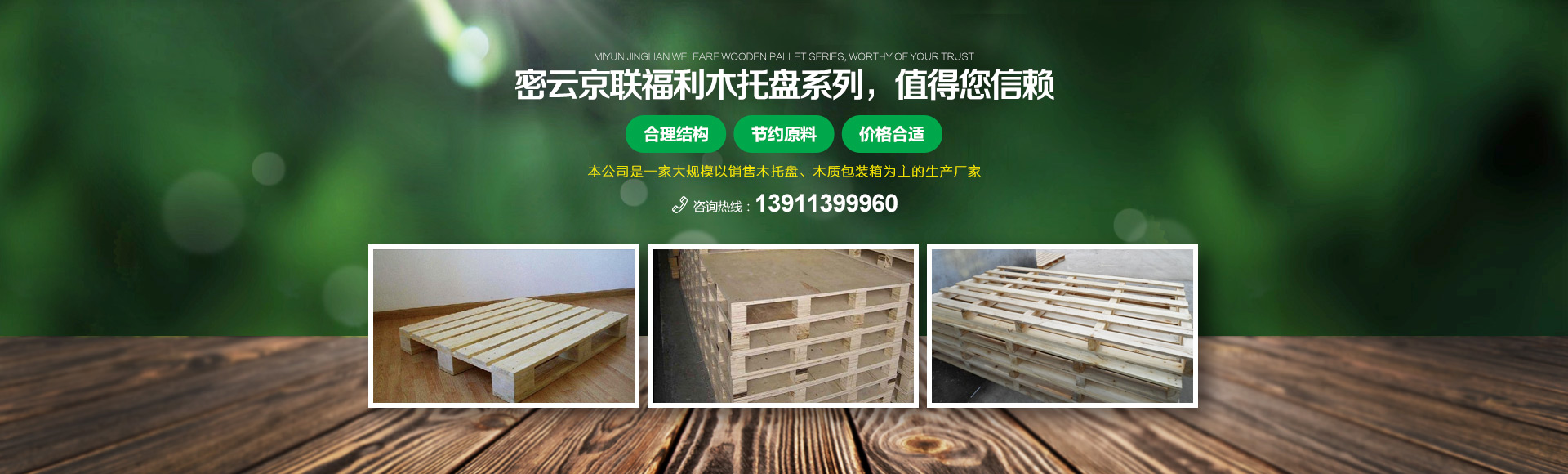 北京京聯(lián)國(guó)順木制品有限公司 (原北京市密云縣京聯(lián)福利木制品廠)成立于1993年,位于北京市密云縣西田各莊鎮(zhèn)蒼頭村,占地約5000平米。我公司工廠是一家大規(guī)模以銷(xiāo)售木托盤(pán)為主的生產(chǎn)廠家。本工廠是一家直接采購(gòu)原木,按客戶(hù)要求生產(chǎn)規(guī)格尺寸的托盤(pán),我公司工廠位于河北省承德市有著木材加工點(diǎn),可以做到,從山上的木頭下山到客戶(hù)手中的托盤(pán)都是一手貨,減少了中間商的費(fèi)用,所以我公司售出的產(chǎn)品對(duì)北京這個(gè)龐大的市場(chǎng)來(lái)說(shuō)在同樣的規(guī)格尺寸的托盤(pán)來(lái)說(shuō)價(jià)格比較占優(yōu)勢(shì)。
